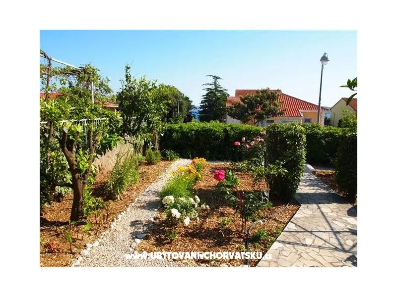 Apartman je u prizemlju ima spavaču sobu sa bračnim krevetom uz mogućnost dodatnog ležaja, odvojena opremljena kuhinja, tuš/wc, terasa 10m2 sa garniturom za sjedenje okružena zelenilom, parking
