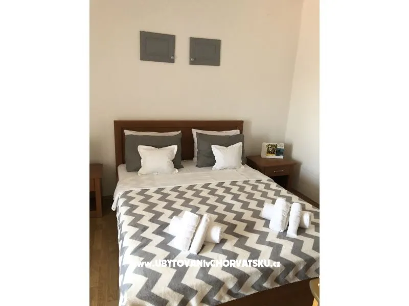 Apartman sa pogledom na more,ima 2 spavaće sobe,kompletno opremljenu kuhinju i dnevni boravak,kupatilo,balkon,klimatizaciju,sat-tv,wifi,parking.
