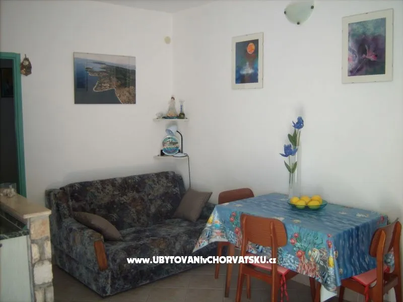Zeleni apartman se nalazi u obiteljskoj kući. Kuća je udaljena 2,5 km od Vela Luke i nalazi se na 30 m od plaže u mirnoj uvali Mikulina luka. Apartman je pogodan za manju obitelj 3 - 4 čl . Flat int