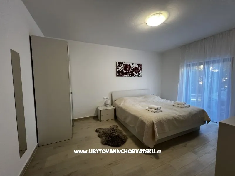 Apartman Bougainvillea se sastoji od dnevnog boravka, blagovaonice, kuhinje, sobe kupatila i terase, u njemu mogu boraviti 4 osobe. Nalazi se 200 m od mora (od rive) i 500 m od pješčane plaže Bijeca.