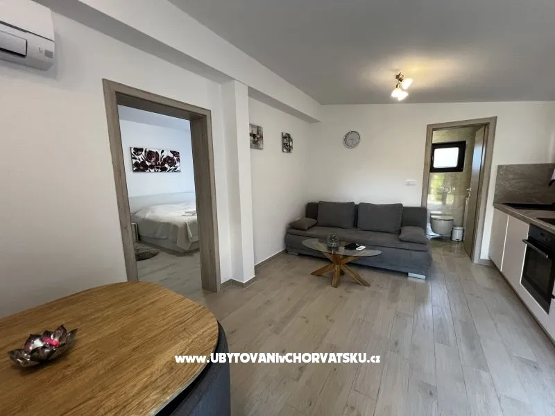 Magnolia ima dnevni boravak, kuhinju, 2 sobe, 2 kupatila, 2 terase. Nalazi se na prvom katu, 200 m od mora, 500 m od plaže. Prima 6 osoba (kauč 1.80x2m).