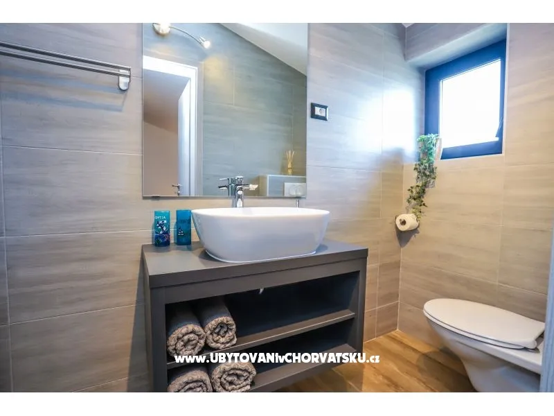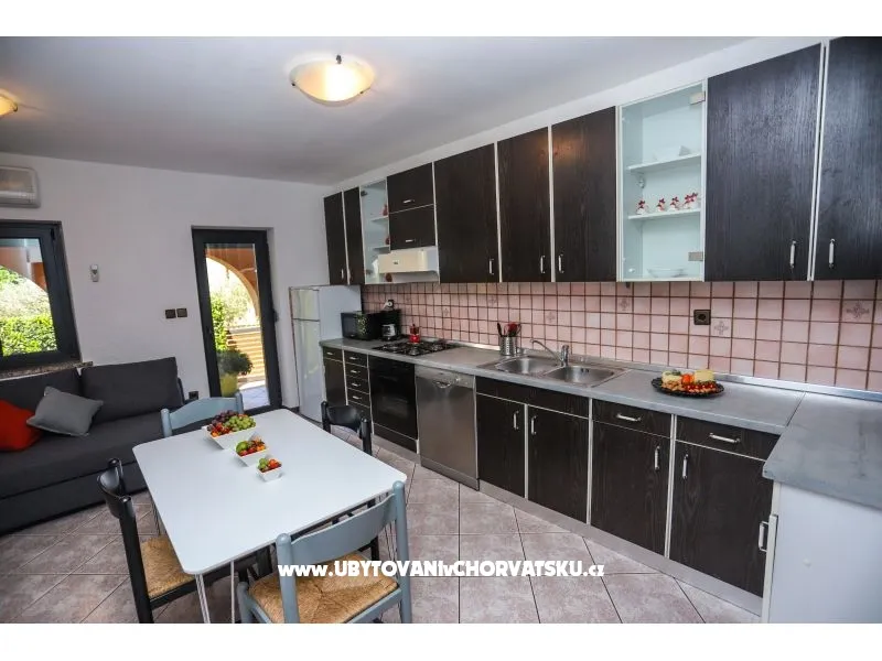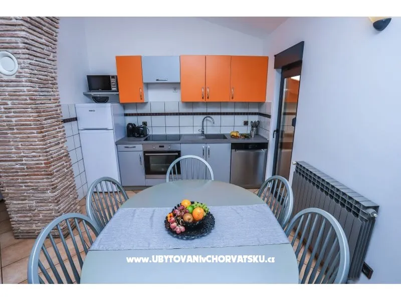 Apartman se sastoji se od dvije spavaće sobe, kupaonice, kuhinje, dnevnog boravka i velike natkrivene terase. Apartman je opremljen perilicom rublja i posuđa, pećnicom, WI-FI, klima uređajem, TV-SAT.