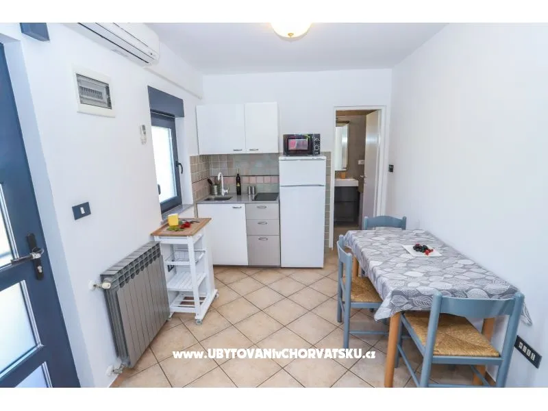 Apartman se sastoji od spavaće sobe, kupaonice, kuhinje i balkona. Apartman je opremljen perilicom rublja, mikrovalnom pećnicom, WIFI internetom, klima uređajem, TV-SAT, komarnicima.