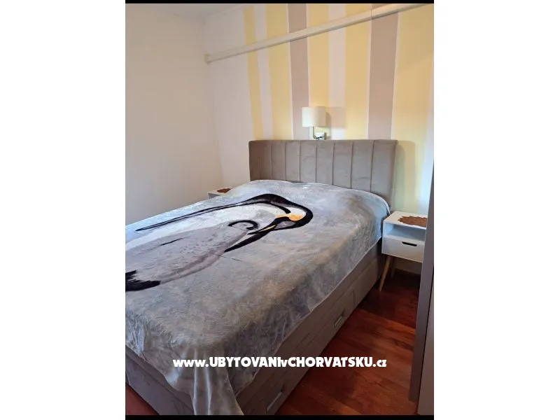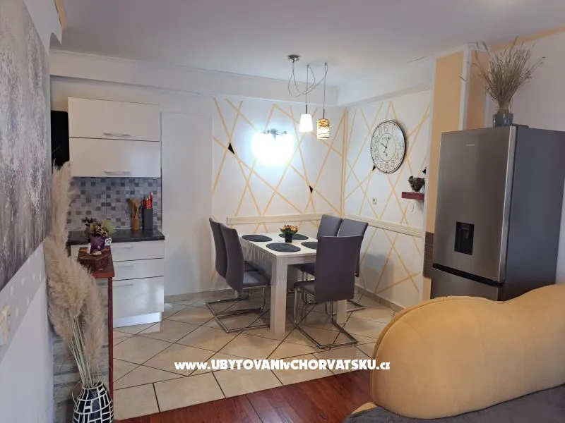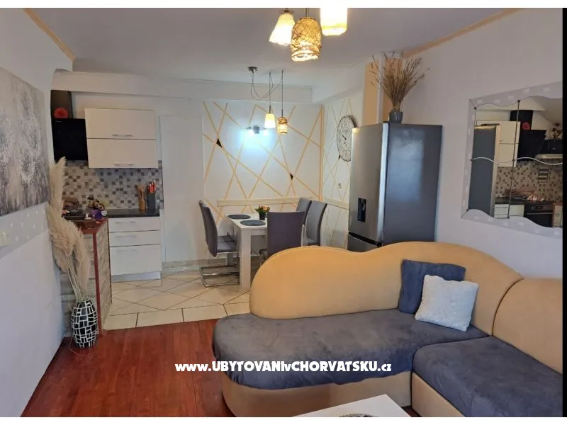 Apartman Malu se nalazi na mirnoj lokaciju,sastoji se od boravka ,blagovaone i kuhinje u prozemlju,te 2 spavace sobe i kupaonom na katu.