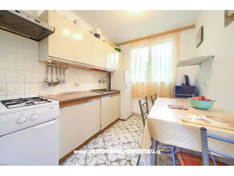 Apartman (40m2) se sastoji od 1 spavaće sobe (bračni krevet), dnevnog boravka (kauč na razvlačenje za 2 osobe), kupaonice (tuš/WC), kompletno opremljene kuhinje, balkona, s pogledom na more i parkirnog mjesta u dvorištu, Klima, wifi, perilica.