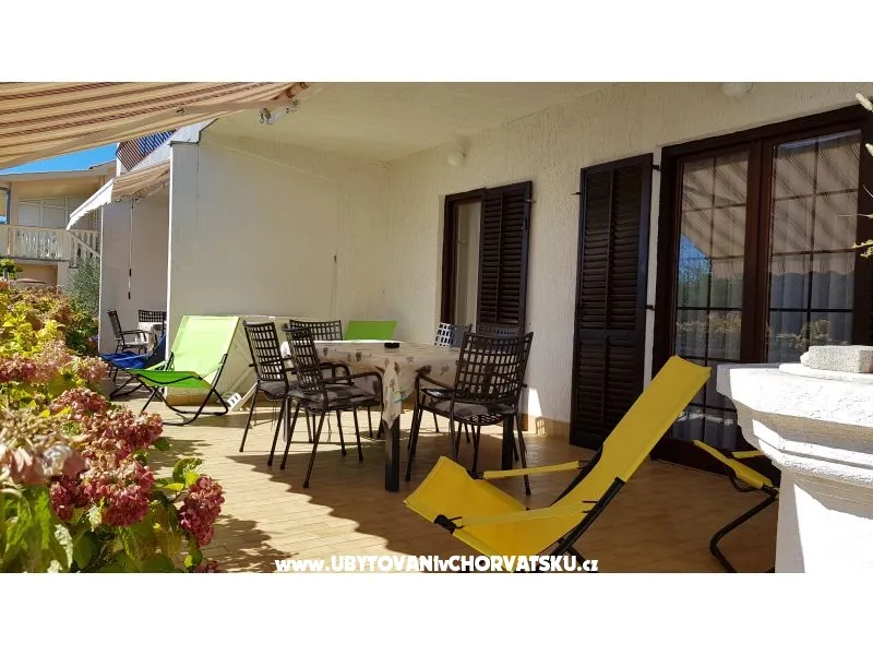 Apartman ima zaseban ulaz. Pomoćni krevet- kauč za razvlačenje, za dvoje djece nalazi se u verandi. Terasa ima 30m2, pogodna je za obiteljska druženja. Na terasi se koristi pokretni roštilj.