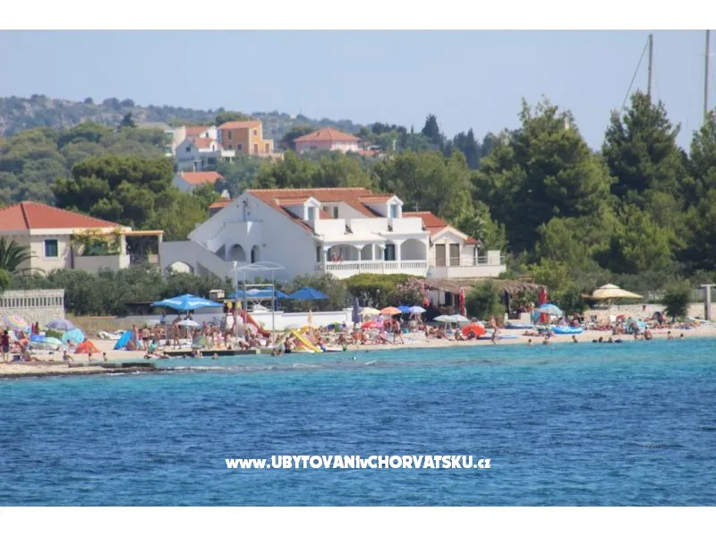 Apartman na prvom katu s pogledom na more. Soba s bračnim krevetom za dvoje, soba s 2 kreveta, dnevni boravak, kuhinja, wc, kupaona, balkon s pogledom na more.