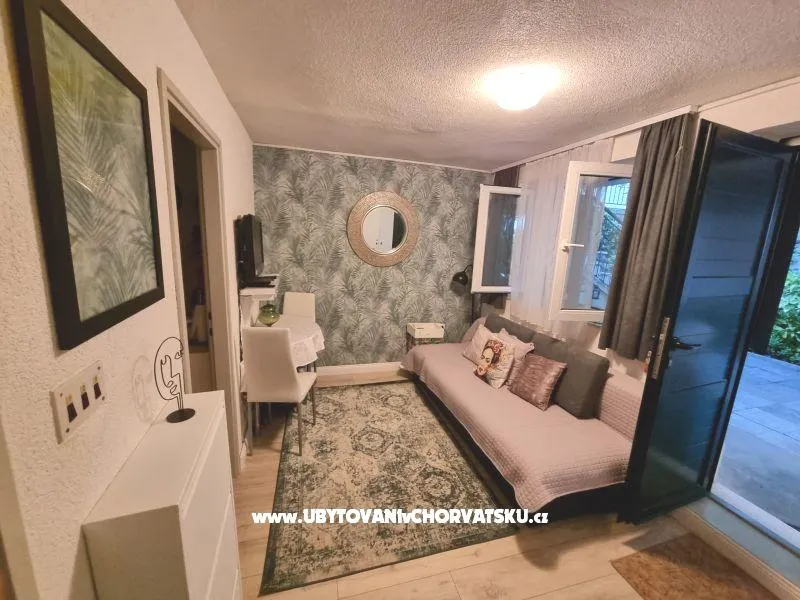 Rijetko u ponudi, apartman sa vlastitim dvorištem ! Nudimo Vam jednostavan smještaj u apartmanu sagrađenom 1970.god.,od zdravih građevinskih materijala, ali prilagođen današnjem vremenu. Apartman je potpuno opremljen za suvremen život. Unutrašnjost poštuje prirodno okruženje, pa prevladavaju bijele, modro-zelene i zlatne boje. Dvor krasi autohtono mediteransko bilje koje obiluje eteričnim uljem, pa stvara zdravo i umirujuće okruženje koje dovodi do fizičkog i mentalnog oporavka A kad zaželite u hladovini dvora zadrijemati na ležaljkama, gusta stara pergola od vinove loze, pružit će vam sigurnu zaštiitu od vrelog sunca..Dakle,ako poželite potpuno se opustiti i osjetiti poznatu mediteransku "siestu", tada nećete pogriješiti izborom ovog apartmana, jer smo se pobrinuli da vam ugodimo.
