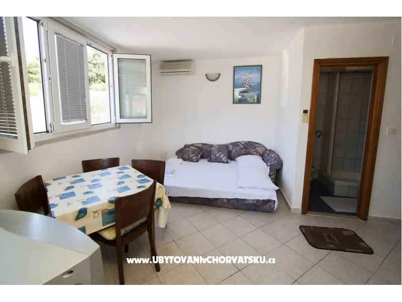 MOBILNA KUĆA NALAZI SE 300 m OD MORA U MASLINIKU U NEPOSREDNOJ BLIZINI KUĆA SA APARTMANIMA, NO ISTOVREMENO GOSTIMA PRUŽA MIR I IDILU, S PRIVATNOM TERACOM I PARKINGOM ISPRED OBJEKTA. NALAZI SE U POVLJIMA NA OTOKU BRAU, MJESTU POSVEĆENOM FAMILY TURIZMU