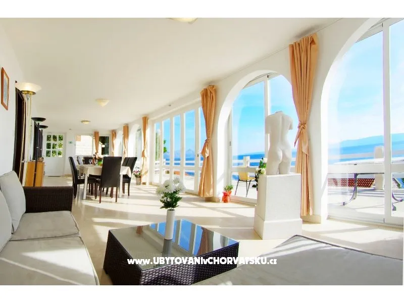 Cijela kuća za do 18 osoba sastoji se od 5 apartmana, 6 kupaonica, 7 spavaćih soba, 5 terasa, roštilja, 4 parkirna mjesta. Najbliža plaža udaljena je 50 metara. 1. kat, 2. kat i potkrovlje. Idealno za velike grupe prijatelja i obitelji. Sigurnosni polog od 500 € mora biti plaćen prilikom prijave u gotovini. **** Nakon uplate sigurnosnog pologa prilikom prijave, uvijek vraćamo cijeli sigurnosni polog prilikom odjave. U cijenu je uključeno besplatno završno čišćenje. Naravno, ponekad ljudi ne razumiju niti poštuju privatnu imovinu i kada moramo dodati mnogo više energije, vremena, ljudi i novca za čišćenje tog prostora nakon odlaska gostiju. To je razlog zbog kojeg na check-inu nudimo cjenik za čišćenje. Čišćenje mrlja na zidovima, velike mrlje na balkonima, terasama (izrađene su od kamena koje apsorbiraju sve) i podovima, popravljanje slomljenih stolica (ili kupnja novih), rušenje stvari u vlasništvu i vrtu (te popravak ili kupnja novih) nisu pokriveno besplatnim završnim čišćenjem. Ovo dodatno čišćenje košta dodatno vrijeme, energiju i, na kraju, novac i novac za pokriće čišćenja za to će se oduzeti od sigurnosnog pologa iz cjenika za čišćenje. Nadam se da vam to odgovara i da to neće biti problem za rezervaciju ove lijepe nekretnine koja je idealna za veliku grupu prijatelja ili obiteljskih okupljanja, jer za sada smo imali gotovo uvijek goste koje bi netko poželio. (: Hvala na razumijevanju. **** Kuća se sastoji od 5 apartmana: dva na 1. katu, jedan veliki na 2. katu i dva u potkrovlju. **** Potkrovlje: Apartman 1: Kuhinja, dnevni boravak / blagovaona s kaučem za jednu osobu, spavaća soba s jednim bračnim krevetom i jednim krevetom za jednu osobu, kupaonica i terasa s prekrasnim pogledom. 60 m2. Studio apartman: kuhinja, dnevni boravak / blagovaona s kaučem za jednu osobu i king size krevetom, kupaonica. Lijep pogled s prozora u dnevnoj sobi. 50 m2. Dodatni king size krevet je dostupan u hodniku u potkrovlju. **** 2. kat (može ugostiti 10 osoba): Jedan veliki apartman: dnevni boravak, blagovaonica, kuhinja, tri spavaće sobe, druga prostrana blagovaonica s dugim balkonom i prekrasnim pogledom na more. Tri dodatne smještajne jedinice dostupne su na dvije velike sofe. 150 m2. **** 1. kat (može primiti 8 osoba): Apartman 1: kuhinja s blagovaonicom, dnevni boravak s kaučem za dvije osobe, spavaća soba s bračnim krevetom i dva kreveta za jednu osobu, kupaonica i terasa. 70 m2 Apartman 2: kuhinja s blagovaonicom, kupaonica, spavaća soba s bračnim krevetom i terasa. 50 m2