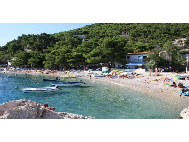 Nalazi se u prizemlju. Ima sobu s bračnim krevetom i pomoćnim ležajem za jedno djete. Opremljena kuhinja i kupaona. Na velikoj zajedničkoj terasi, s pogledom na more, svaki apartman ima svoj stol.