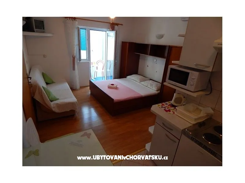 Studio 2+2 se sastoji od bračnog ležaja i kauča na razvlačenje prilagođeno za jedno ili dvoje manje djece. Apartman uključuje klimu uređaj, wi-fi Internet, mikrovalnu pećnicu, te kuhalo za vodu.