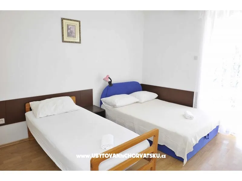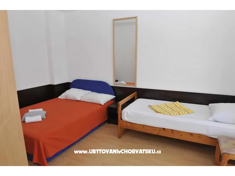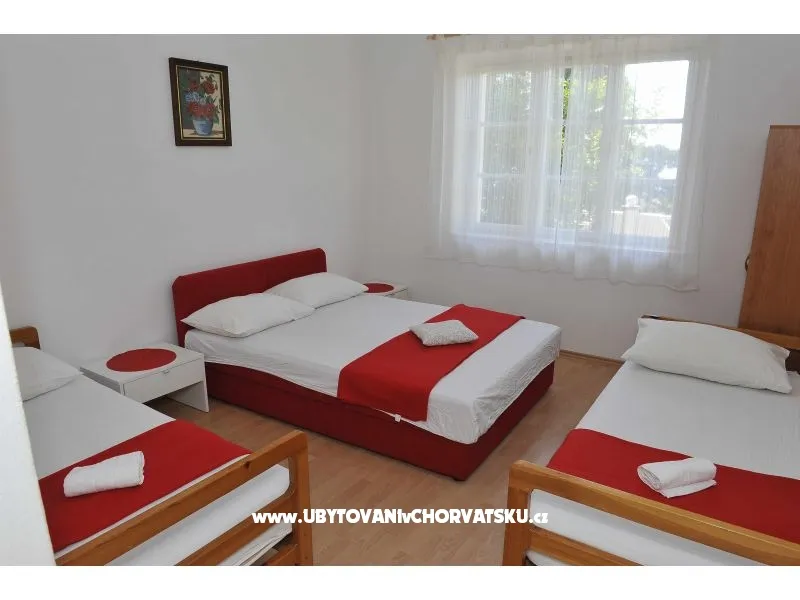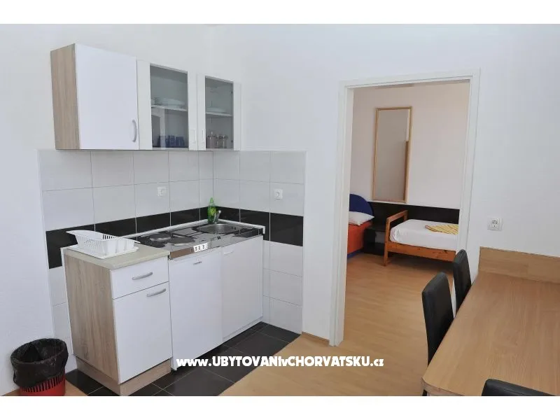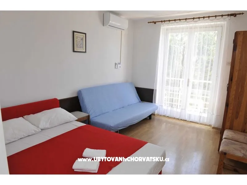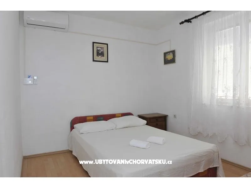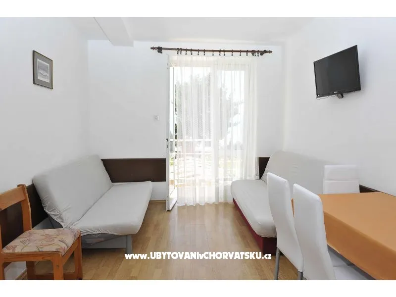 Apartman za 4 osobe. Sastoji se od dnevnog boravka sa kuhinjom, jedne sobe sa francuskim ležajem i još jednim krevetom, balkonom sa pogledom na more.