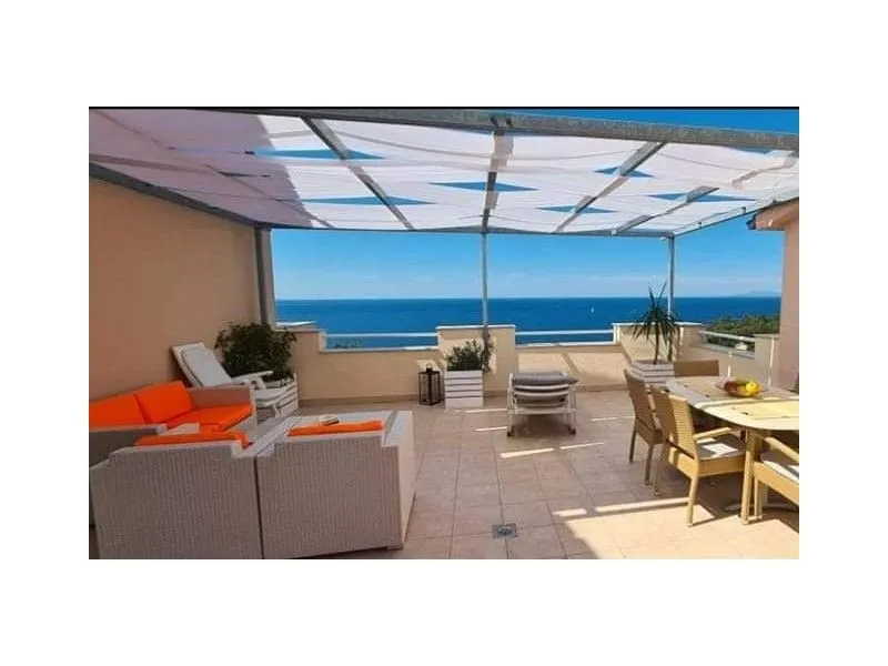 Apartman 55m2. 1.kat. Za 4 osobe. 2 sobe, kuhinja, kupatilo i balkona s pogledom na more. U svakoj sobi nalazi se bračni krevet dimenzija 160x200 cm. TV, klima uređaj i WI-FI Internet. Parking. Roštilj. Perilica rublja na upit.