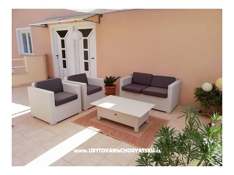 Apartman 55m2. 2.kat. Za 4 osobe. 2 sobe, kuhinja, kupatilo, dnevni boravak i balkon s pogledom na more. U svakoj sobi nalazi se bračni krevet dimenzija 160x200 cm. TV, klima uređaj i WI-FI Internet. Parking. Roštilj. Perilica rublja na upit.