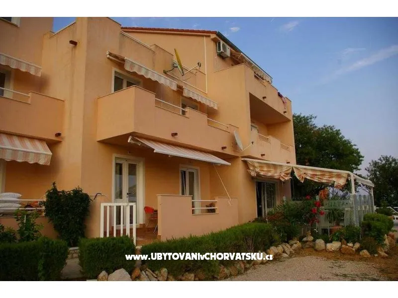 Apartman na 1.katu, za 4 osobe, 38m2. 2 sobe, kuhinje, kupatilo i balkon s pogledom na more. U svakoj sobi nalazi se bračni krevet dimenzija 160x200 cm. TV, klima uređaj i WI-FI Internet. Parking, roštilj, terase. Perilica rublja na upit.