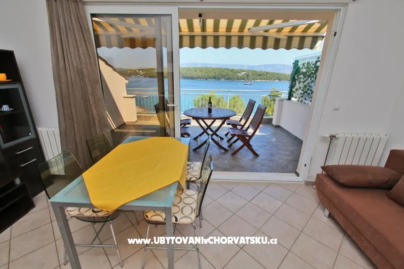 Apartman Sol, topao i moderan. Ima jednu spavaću sobu, prostranu kuhinju, a najljepši dio je velika terasa s pogledom na more. Na terasi možete jesti, suncati se i uzivati u predivnom pogledu.