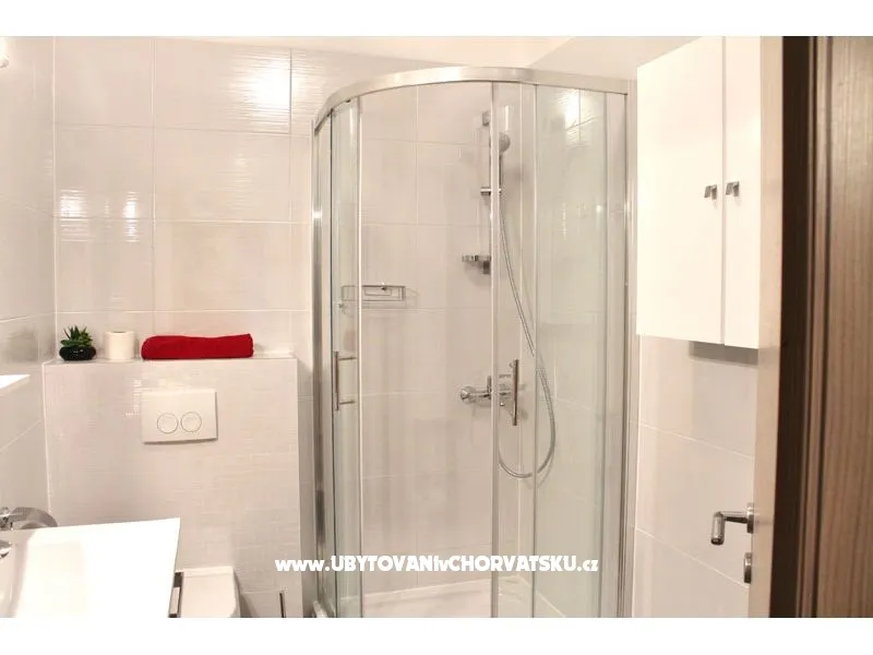 1 spavaća soba s bračnim krevetom i krevetom na razvlačenje, kauč na razvlačenje za 2 osobe u dnevnoj sobi. Apartman se nalazi na prvom katu obiteljske kuće.