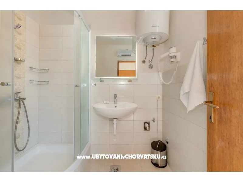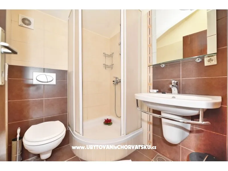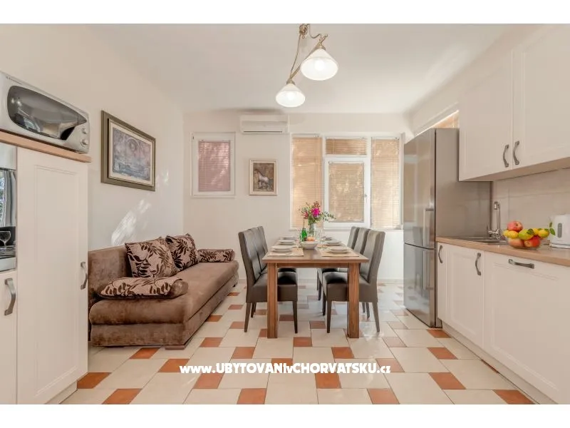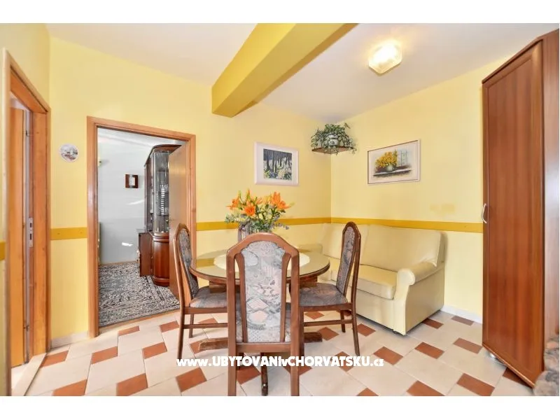 Apartman se sastoji od jedne dvokrevetne, jedne četvero krevetne sobe , a dva ležaja su u dnevnoj sobi. Ima jednu kompletnu kupaonicu te jedan toalet s umivaonikom. Dva balkona su s pogledom na more.