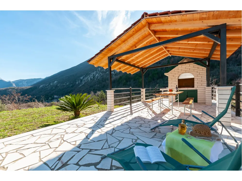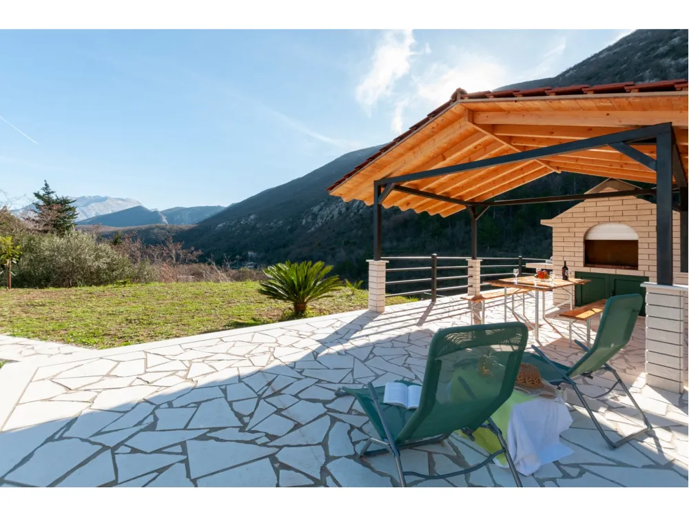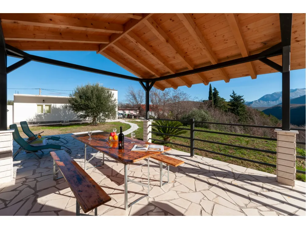"Villa MUSA" - Kuća se nalazi u prekrasnom krajoliku s pogledom na okolna brda i planine. Ima jednu spavaću sobu s bračnim krevetom, dvije odvojene sobe s jednim krevetom, kupaonicu s tušem, kuhinju i veliki dnevni boravak s kaučem na razvlačenje. Velika natkrivena terasa sa stolom. Jacuzzi. Roštilj.