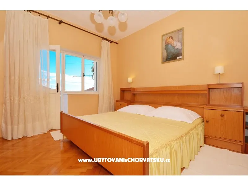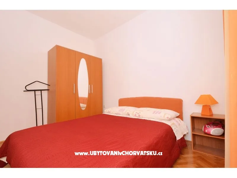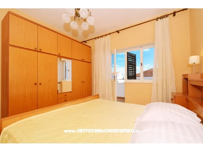 71 m2 + 35 m2 balkon + terasa, drugi kat 2 spavaće sobe, 1 kupaonica s tušem Potpuno opremljena kuhinja Klima, Wi-fi, TV Privatni parking, roštilj Kućni ljubimci dozvoljeni na upit 900m od plaže