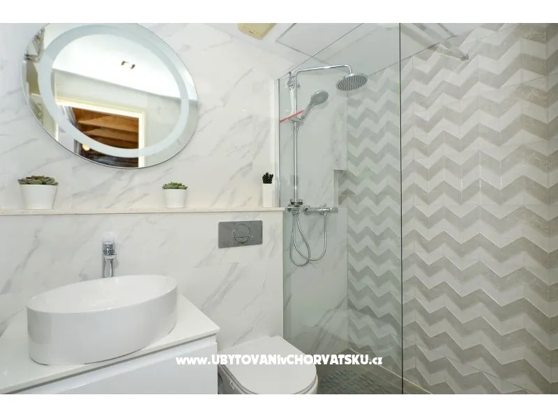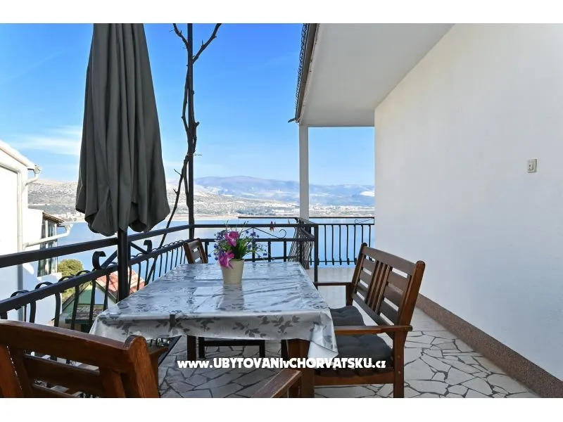 Površina: 72m2 + 42m2 Balkon /terasa pogled more, 2 spavaće sobe, 1 kupaonica, TV SAT, vanjski roštilj, 1 privatni parking, 1. kat, 70 m od šljunčane plaže, Perilica rublja kod vlasnika uz nadoplatu 5