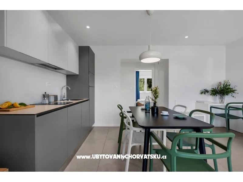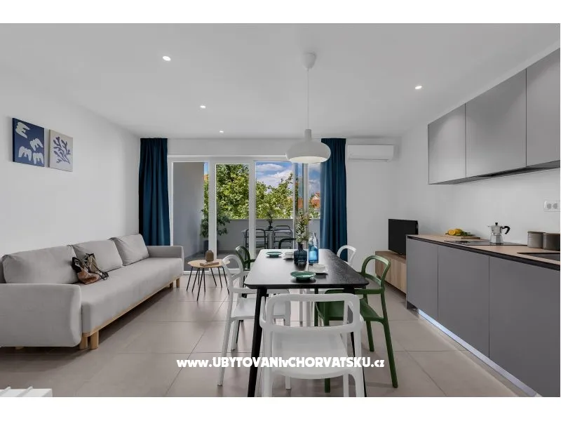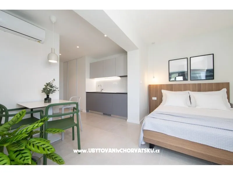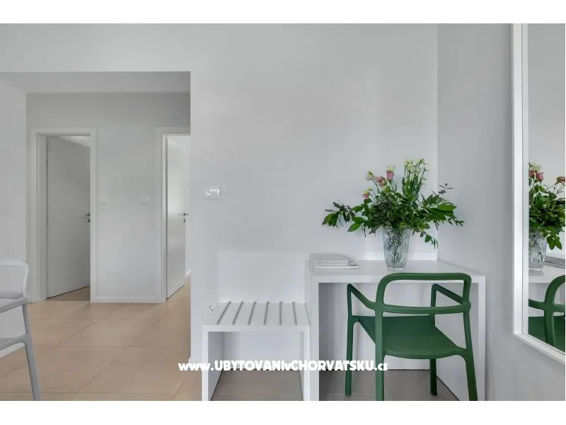 Apartmani 18 se nalaze u blizini plaže i centra mjesta. S terase se pruža prekrasan pogled na more i otoke. Samo par minuta hoda vas dovodi do centra mjesta gdje su smješteni resorani i trgovine. Stajalište za autobus i taxi je u neposrednoj blizini objekta. Apartmani imaju parking koji je za goste besplatan.