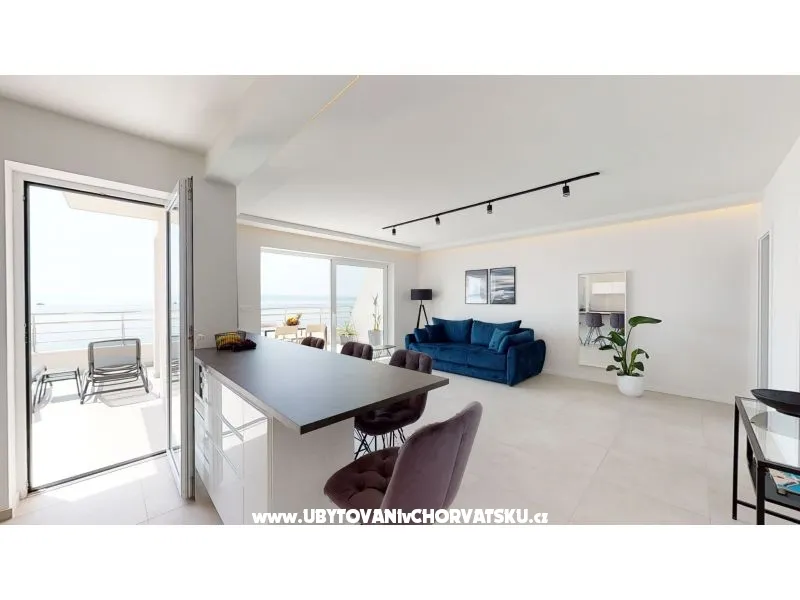 apartman nalazi se na 3. katu obiteljske kuče udaljene samo 5 metra od plaže.