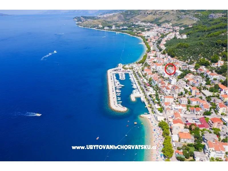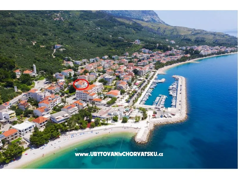 Obiteljska kuca sa 8 apartmana. Nalazi se u mirnom dijelu Tučepa. Udaljenost do plaže je 80 m, 2 minute pješke, a do centra mjesta 30 m.