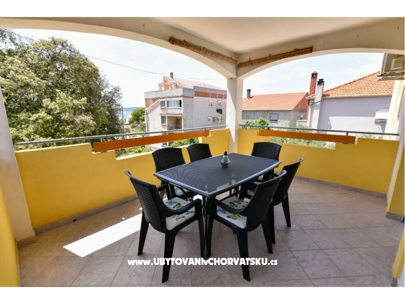 Apartman sa balkonom, udaljenost od plaže 2 minute pješke, parking dostupan uz apartman, apartman se nalazi na prvom katu obiteljske kuće. Od centra udaljeni 10 minuta pješke, restorani se također nalaze u centru a i uz plažu.