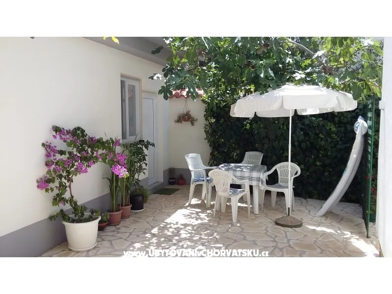 Klimatiziran apartman zauzima cijeli prostor kuće, tako da gosti imaju potpuni komfor i privatnost. Van apartmana može se boraviri u natkrivenom prostoru dvorišta, koje ujedno služi kao terasa.
