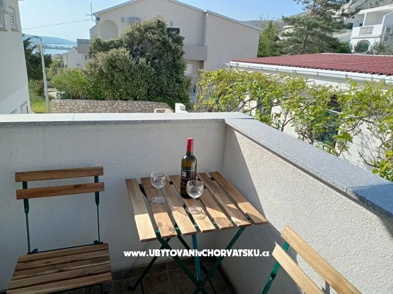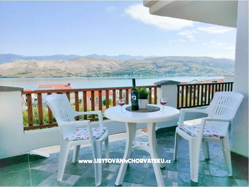 apartmani vrlo komforni, pogodni za obitelj,može i mala djeca, pogled s terase i iz soba na more, na gradsku plažu i cijeli grad Pag. U blizini ima nekoliko šljunčanih i pješćanih plaža te gradska plaža.