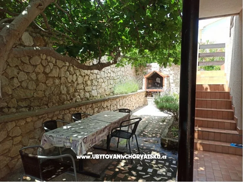 Na prvom katu je apartman za 4 ili 5 osoba koji se sastoji od dvije sobe, kuhinje, kupaone, terase. Apartman ima klimu, Wifi, TV, roštilj i parking.Apartman je udaljen 250 metara od mora.