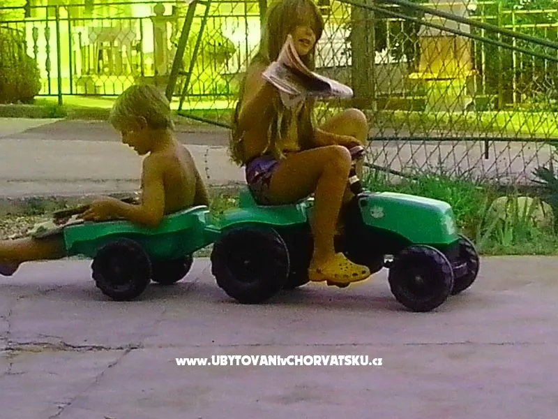 3 spavače sobe, dnevni boravak, kuhinja, kupatilo+WC, WC, natkrivena terasa. Poseban ulaz ,prizemlje. Parking u dvorišču. Povoljno za 1/2 ili 3 familije). ,Bazen za djecu, gril.