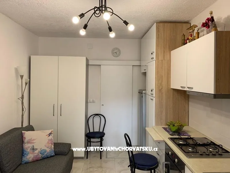 Studio apartman se sastoji od sobe sa kuhinjom i kupaonom. Ispred apartmana je mala terasa Apartman je kompletno opremljen.Perilica za robu se može koristiti uz nadoplatu. Parkiranje je u blizini apar
