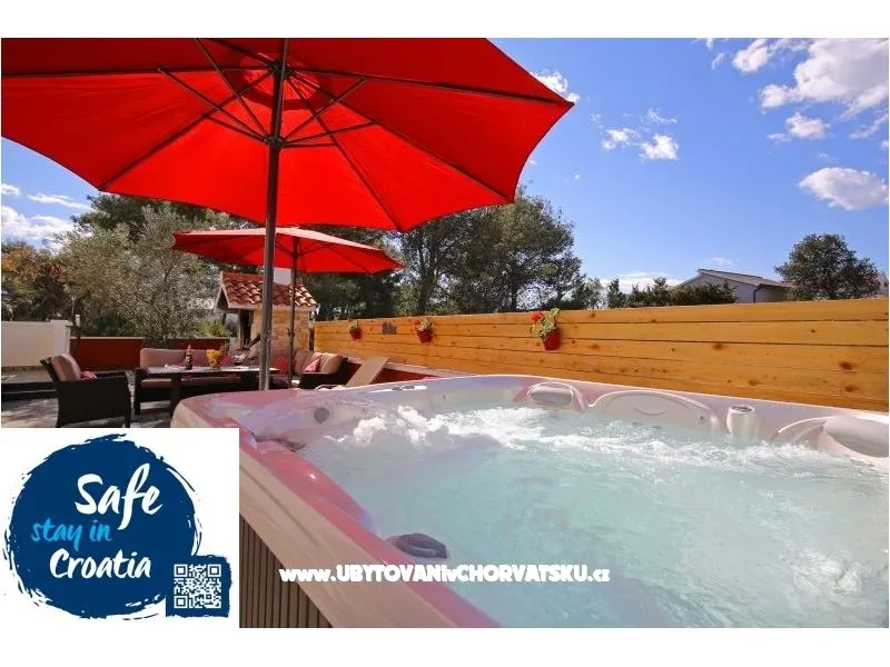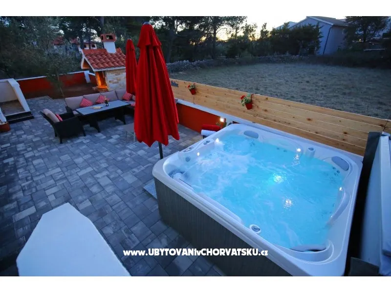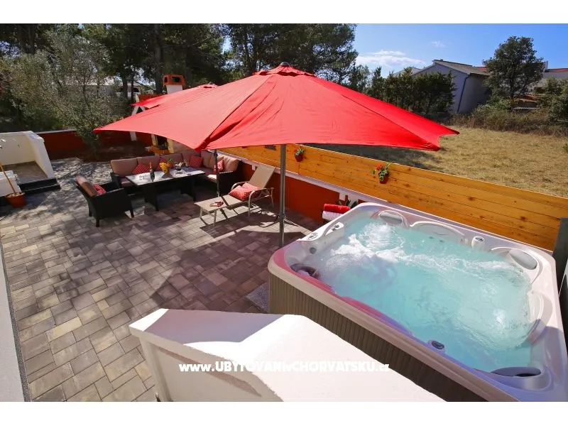 Kuća sa velikom okućnicom sa whirpool (jacuzzi kadom) za 6 osoba, velika vrtna garnitura i veliki roštilj. Idealno za ljetna druženja.. U kući se nalaze dva apartmana. Svaki apartman ima svoju terasu, parkirno mjesto, besplatan Wi-Fi, kuhinju, kupaonicu, spavaću sobu. Udaljeni smo samo 10 minuta hoda uz more do centra Vira (restorani, barovi, animacija za djecu i odrasle). Susjedne kuće su prilično udaljene...