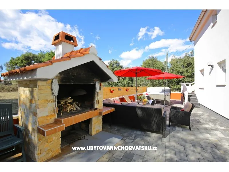 Kuća sa velikom okućnicom sa whirpool (jacuzzi kadom) za 6 osoba, velika vrtna garnitura i veliki roštilj. Idealno za ljetna druženja.. U kući se nalaze dva apartmana. Svaki apartman ima svoju terasu, parkirno mjesto, besplatan Wi-Fi, kuhinju, kupaonicu, spavaću sobu. Udaljeni smo samo 10 minuta hoda uz more do centra Vira (restorani, barovi, animacija za djecu i odrasle). Susjedne kuće su prilično udaljene od naše, tako da gosti imaju svoju privatnost. Vlasnici žive u svom zasebnom stanu u prizemlju kuće.