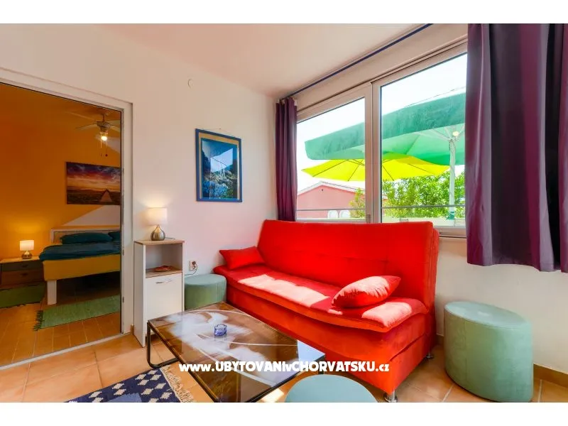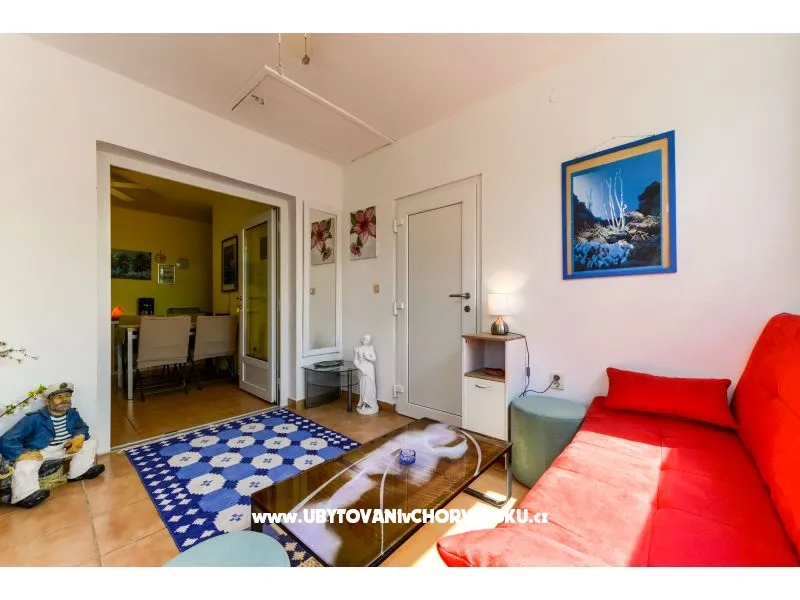 App.2(2+2) za 4 osobe, nalazi se blizu mora i plaže s pijeskom i šljunkom (ca. 120-130m), u obiteljskoj kući (u objektu (CARPE DIEM) na mirnom i sunčanom položaju! Parking se nalazi ispred objekta.