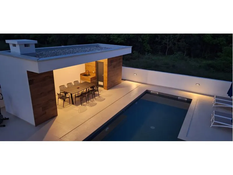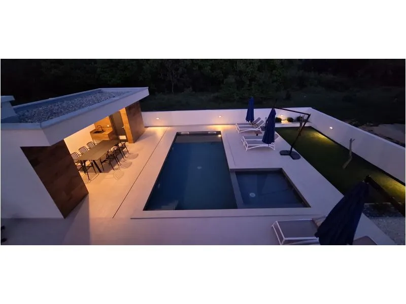 Novo izgrađena vila u mirnoj slijepoj ulici, s 4 spavaće sobe i kupatilima, bazenom, ljetnom kuhinjom s roštiljem. Sve to čini ovu vilu savršenim mjestom za one koji vole ljetna druženja na otvorenom i večere pod zvjezdama i uživanju u jutarnjem miru